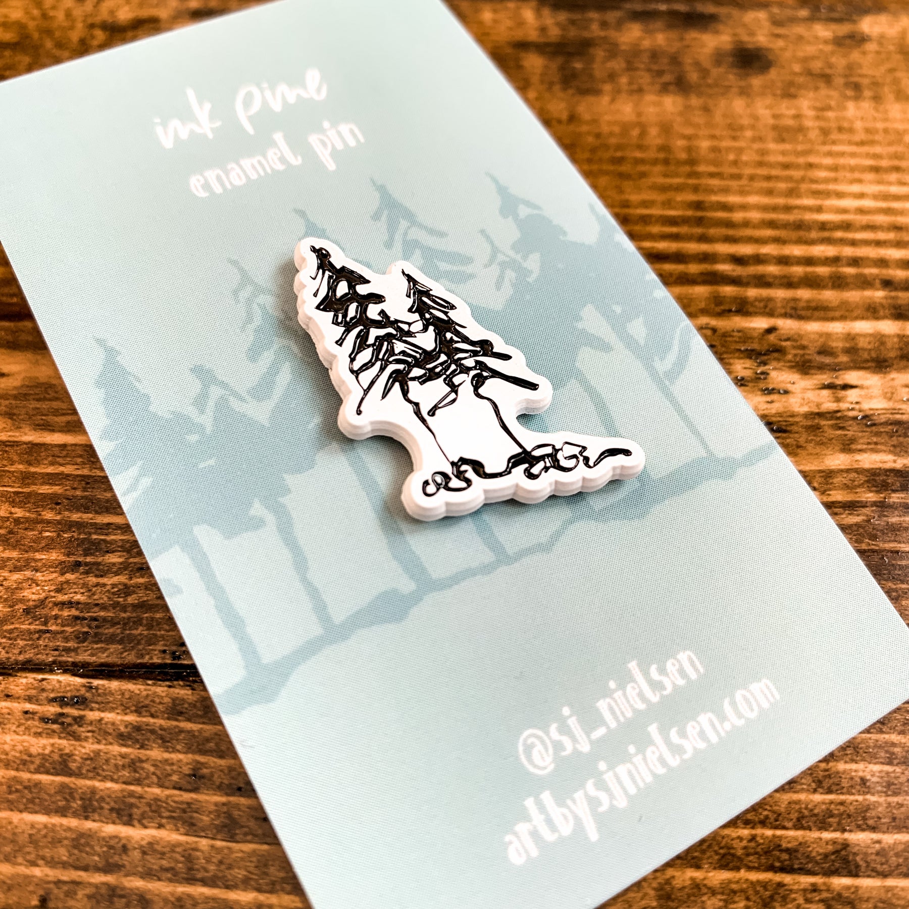 This pin is a 1.25” soft enamel black lapel pin and is the perfect size to pizzazz up your vintage jean jacket or adventure backpack. Each pin comes attached to the custom backing card you see pictured.