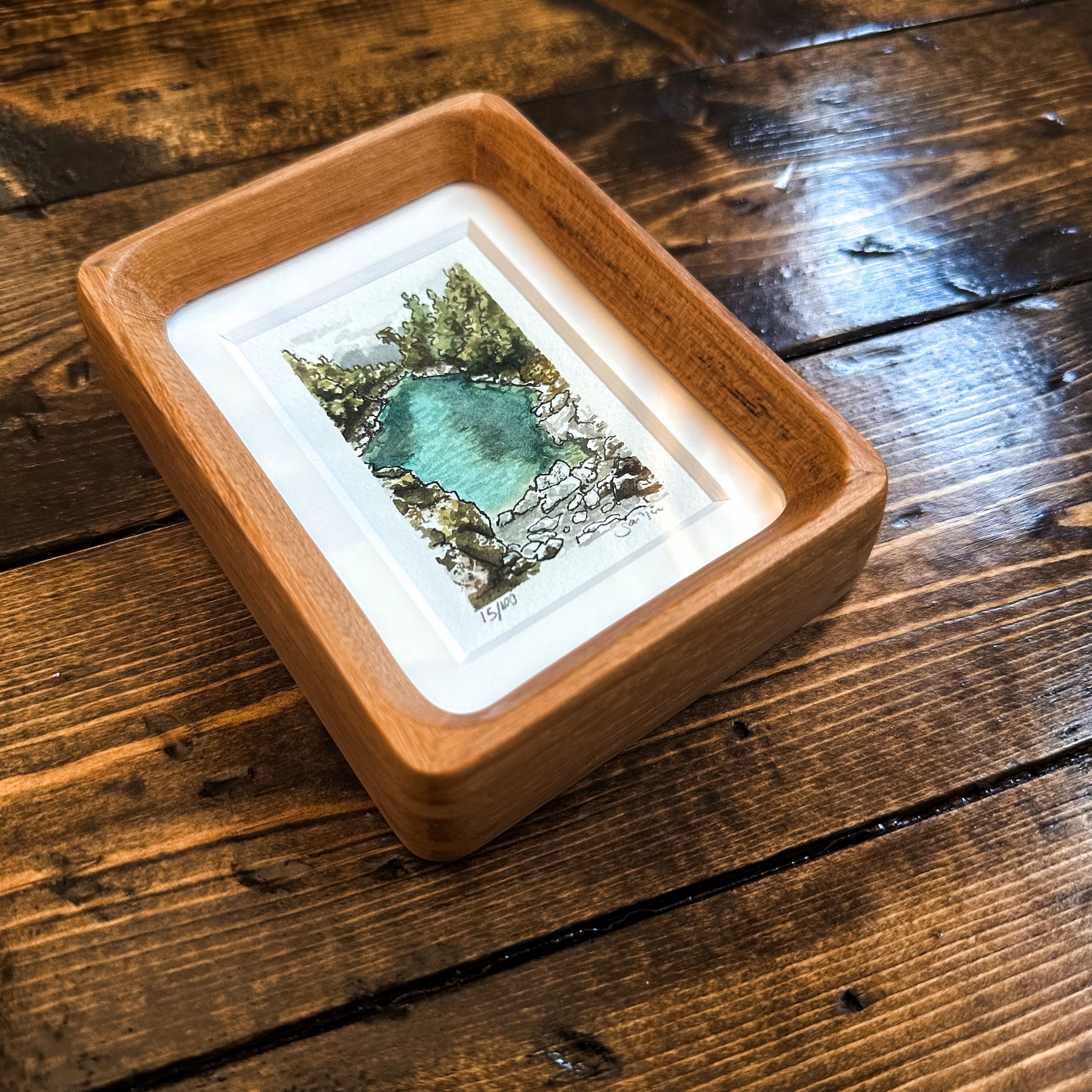 This comes in a 3” x 4” frame matted to 2” x 3”.